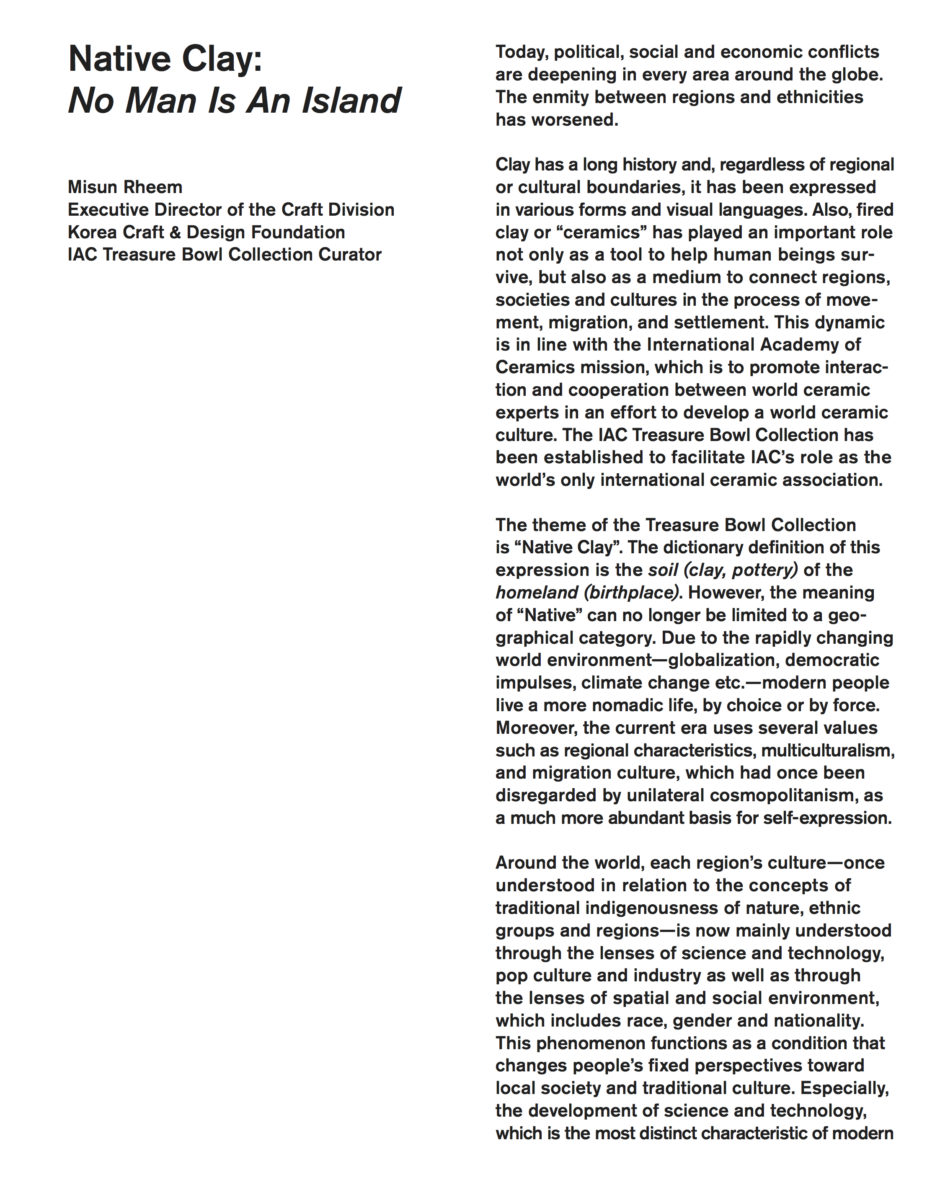 The Treasure Bowl Collection is the result of a rare collaboration of 10 international artists and curator Misun Rheem, all IAC members. Curator Misun Rheem celebrates the IAC philosophy based on the sharing of knowledge and friendship. |