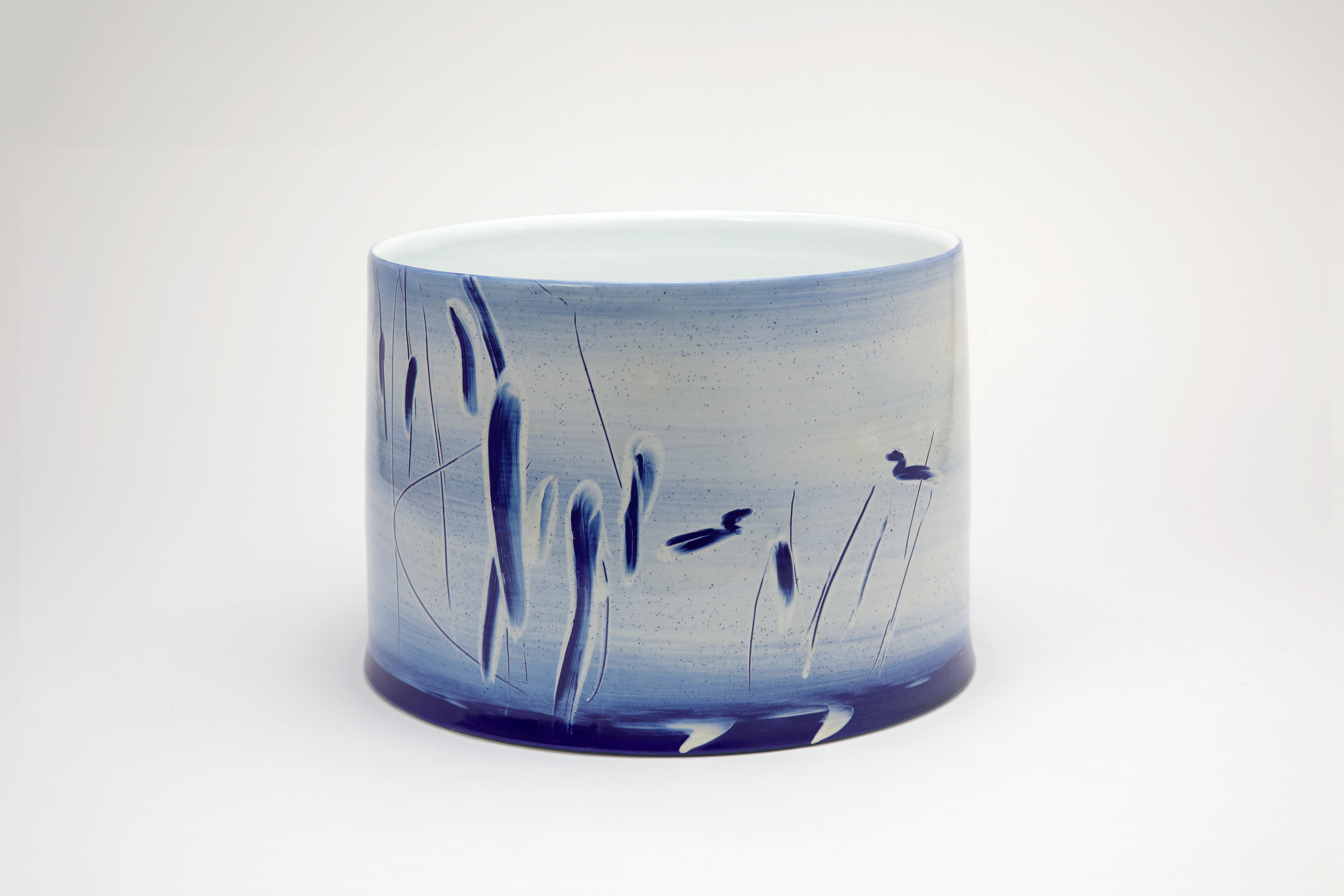 The expression of my Buncheong ceramics is based on that of grayish-blue powdered celadons that were made with white clay and red stoneware clay, which was manufactured in Korea in the 16th century, leading to its maximization of modern pictorial ceramics. This method is focused on applying white slips to the surface of a vessel to maximize its pictorial elements, expressed in the process of applying white clay slip to the surface of a vessel with rough brushes, hands or tree branches. As for the shapes, flat square vessels or round jars are favored. It aims to express the traces of impromptu passing actions conducted by an artist as well as abstraction and contemplative landscape of a comfortable mind reminiscent of the natural image.