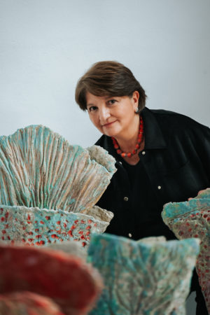 Patricia María León León is an Ecuadorian art ceramicist trained in England, her career in the world of ceramics began in the polemic seventies. The artist describes her style as matteric in a sense that she uses the language provided by the material to express herself. Back in the seventies Patricia lived in England, she attended various artistic residences abroad. There she faced the need to express her thoughts and experiences through clay, making her work an enriching journey for those who appreciate this kind of art. For Patricia, perfection does not exist, each piece is handmade, different and unique.