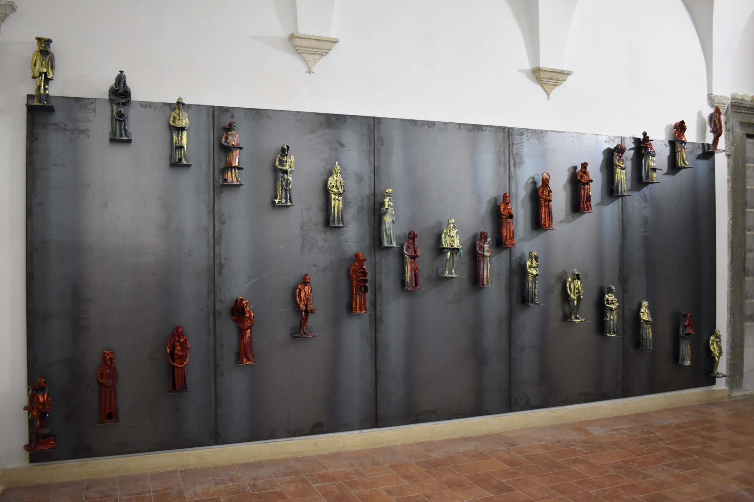 With his sculpture, Porelli wants to provide access to an archetypal dimension of reality, condensing surrealist contaminations, Pop proliferations and archaic symbolism in his visual language. The anthropomorphic inventions that he elaborates produce an estrangement effect of the figuration, creating iconographic absurdities and a new mythology of the present. Porelli’s human repertory emphasises the critical issues of contemporary mankind and all the phenomena that underlie society, including the unsustainability of civilisation as a development model and its incompatibility with nature. His sculpture becomes an example of cultural eclecticism and historical nomadism, representing stylistically the expressive globalization of creation. Porelli’s work finds its preferred expressive technique in ceramics, both for the connection of this material with the ancestral roots of man, and due to its versatility, which offers him the opportunity to express current, modern and contemporary concepts. According to Porelli “I have always used an anthropomorphic figure as a metaphor for reality, an amalgamation of personal experience, perceptual aspects and art-historical idioms.”